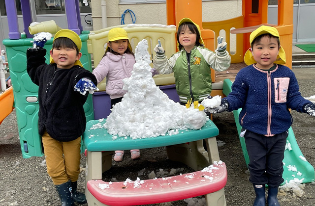 幼児が生涯にわたり生きる力の基礎を培うため、「強い体」と「豊かな心」そして「能力開発」を三本柱として、教育と保育を一体的に実践する。